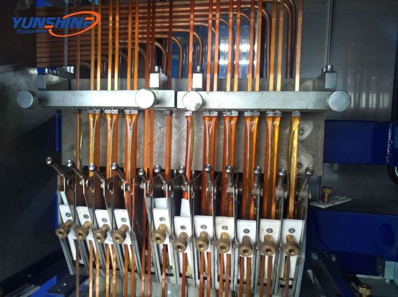 The unit melts electrolytic copper into liquid through an industrial frequency induction furnace, isolates it from the air by covering the surface with charcoal or injecting coal gas (to prevent oxidation of the copper liquid), and controls the temperature of the copper liquid at 1150℃+10℃ through a holding furnace. The continuous casting machine quickly forms copper bars in the bar casting device to continuously produce copper bars, which are finally loaded into discs through auxiliary equipment such as a single-head bar bending machine.